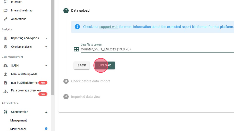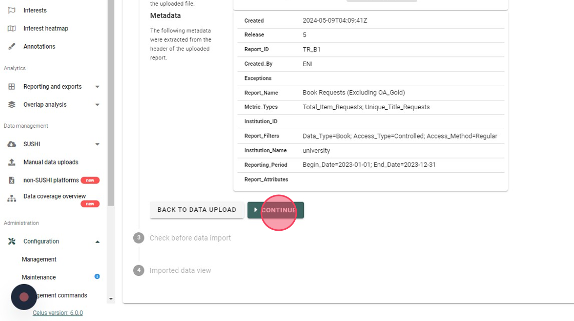 However, CELUS can process the subview reports from Biblioteca ENI through manual data upload. To upload these reports manually, please follow these steps: