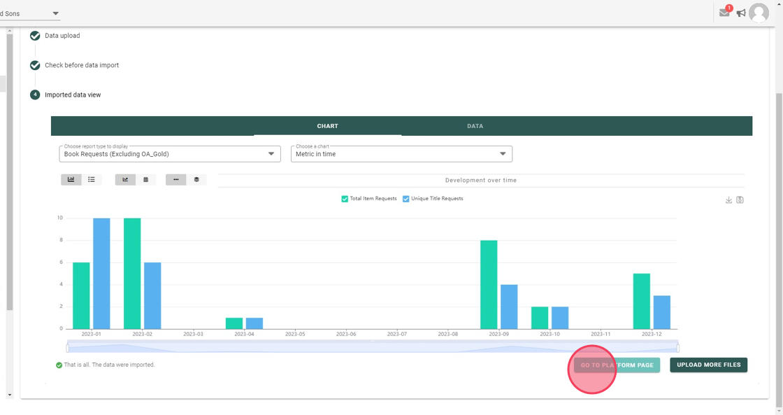 7. Your data are uploaded. You can click on "GO TO PLATFORM PAGE" to view details.